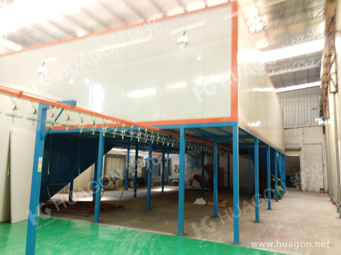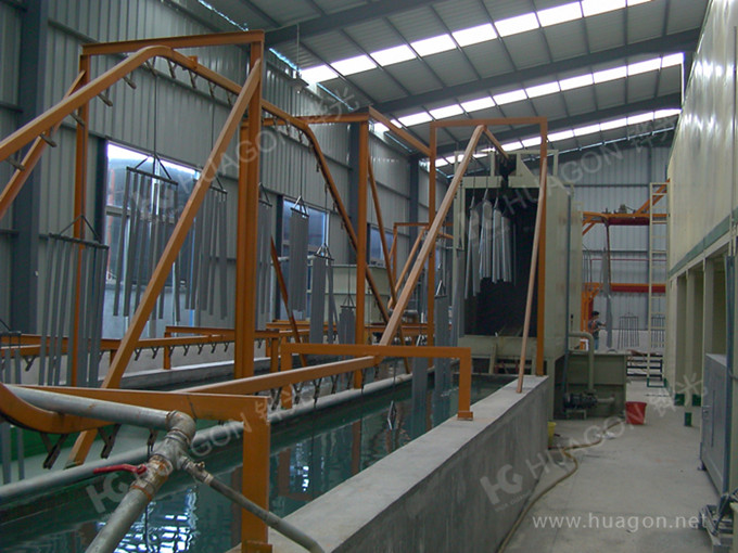 上料-預脫脂-強制脫脂-表調-磷化-噴淋-脫水-多任務站手動/自動噴涂-靜置-烘烤-冷卻-下料